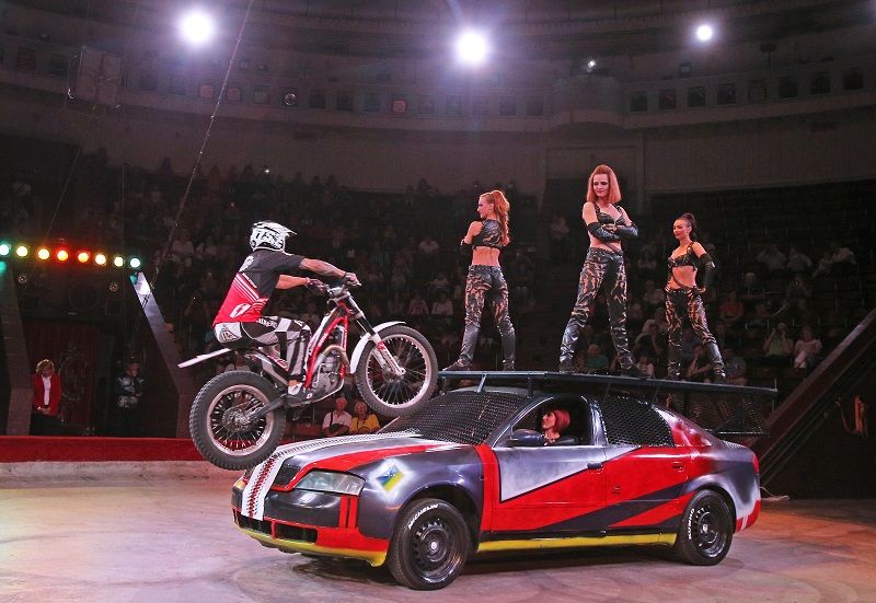 Программа насыщена экстремальными трюками, опасными прыжками и сенсационными акробатическими трюками: мощные великаны-трансформеры, женщины-кошки, которые заполнят воздушное пространство под куполом цирка, силачи-супермены будут соревноваться в выполнении мастерских трюков, колумбийские канатоходцы, феерическое шоу байкеров и даже новый вид циркового искусства представлен в новой программе: феерическое по своей зрелищности и опасностью екстрим- действо- мототриатлон!